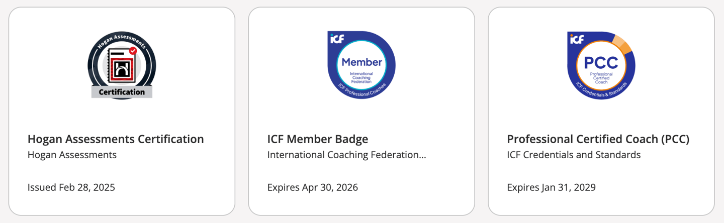 He holds the ICF PCC designation, is a Level 2 Certified Professional Coach, an EMCC Senior Practitioner, and holds a Professional Certificate in Executive Coaching from Henley Business School. Tom has worked with hundreds of leaders from Fortune 500 businesses across financial services, manufacturing, logistics, technology, professional services, media, and energy.